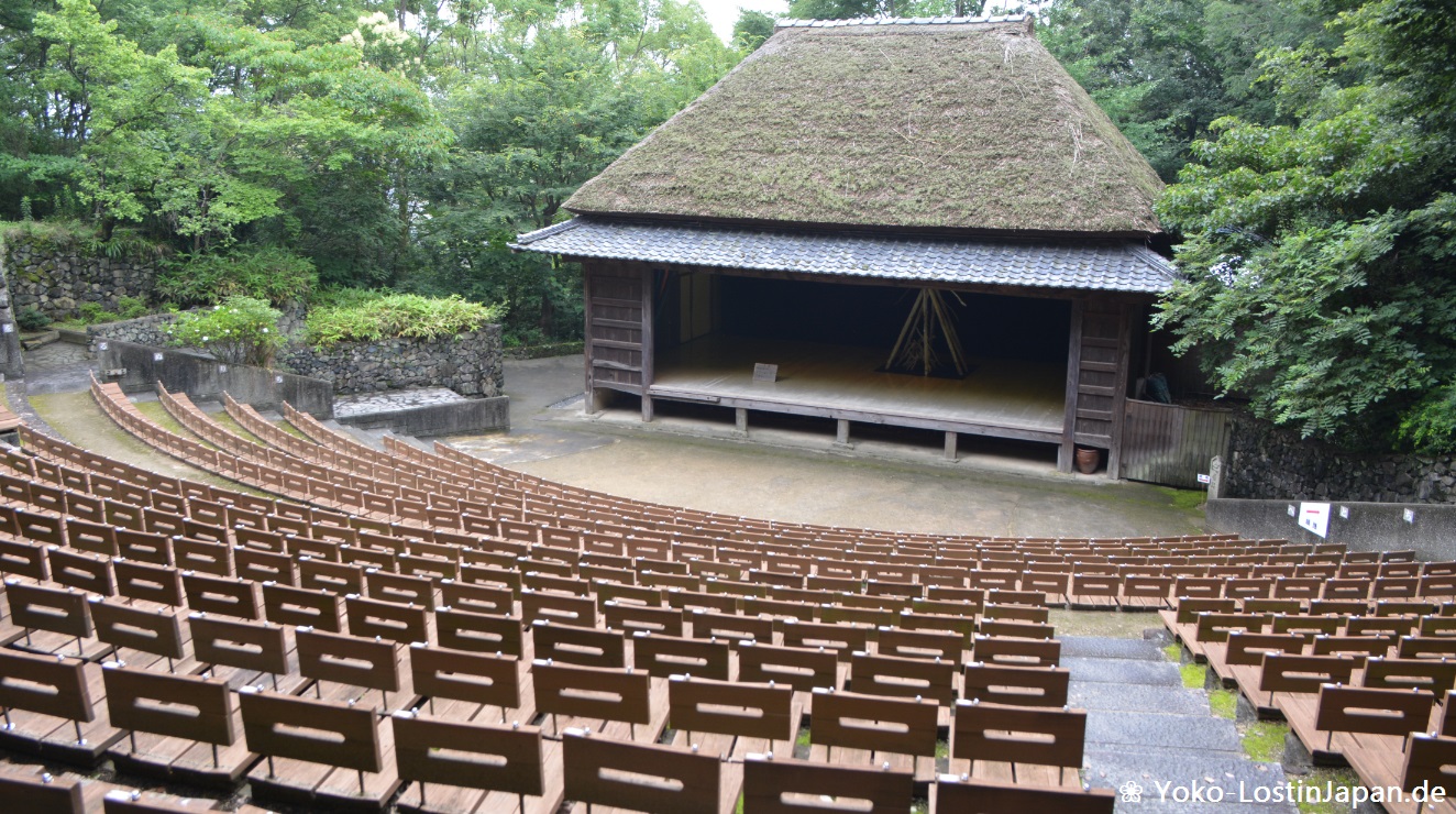 Gestärkt von dem ganzen Essen sind wir dann ins Shikoku Mura – eine Art Openair-Museum mit alten Häusern aus Shikoku. Allerdings hatten wir beide nicht erwartet, dass es so groß ist und man so viel bergauf und bergab laufen musste. Zudem hatte mein Freund aufgrund der Warnschilder vor Wildschweinen ziemlichen Bammel *lach* Es hatte zum Glück inzwischen aufgehört zu regnen, doch man musste bei dem nassen Boden noch ziemlich aufpassen, dass man nicht wegrutscht.